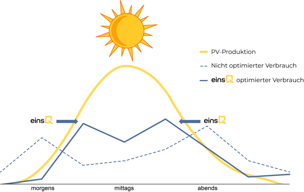 Der einsQ ermöglicht als Energiemanagementsystem die Vernetzung der PV-Anlage mit Energieverbrauchern im Haus und schafft so echte Mehrwerte. Mit einsQ erfolgt eine intelligente Verschiebung des Stromverbrauchs in die profitabelste Zeit.